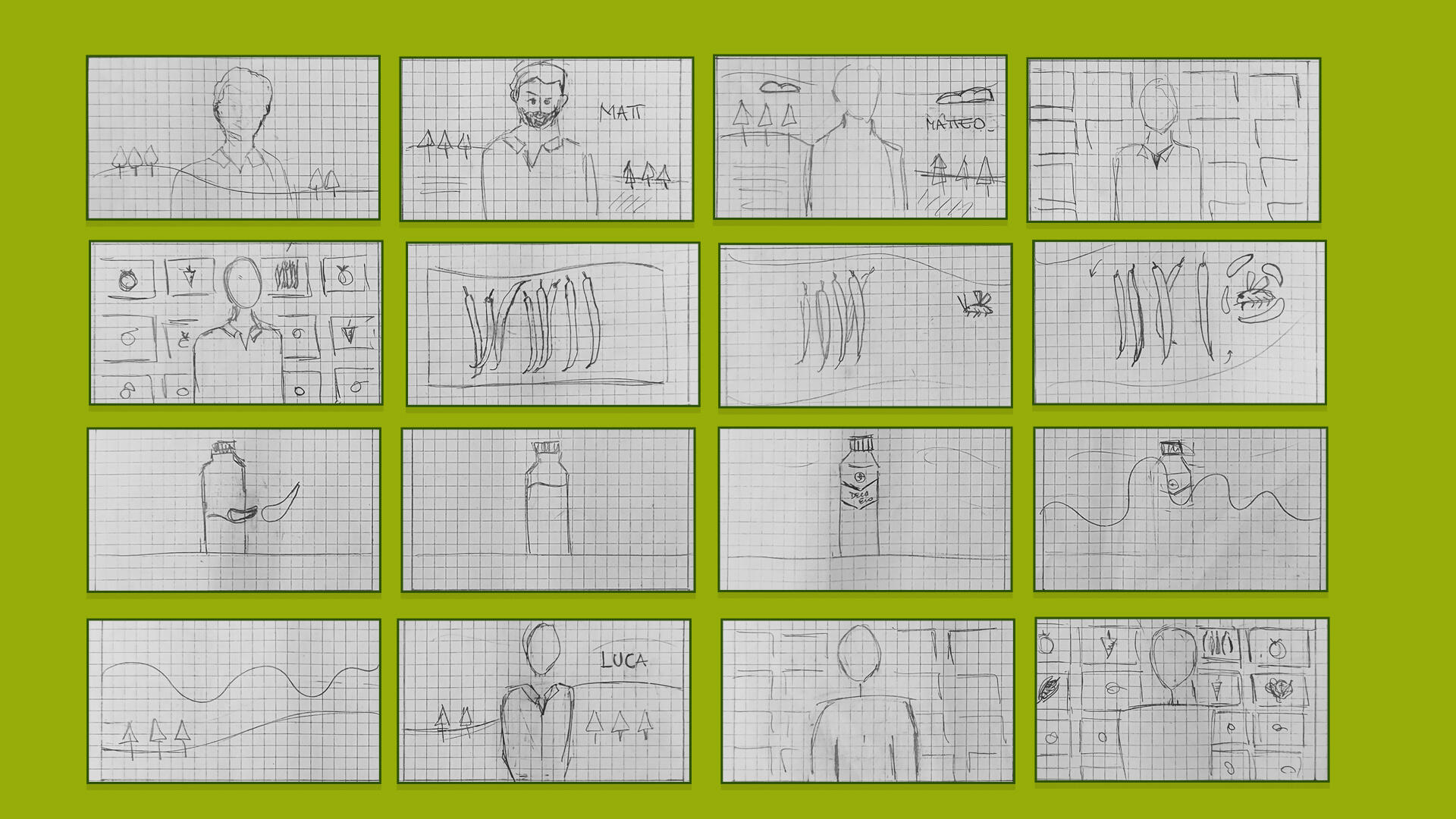 1. Sviluppo dello storyboard cartaceo a partire dal testo fornito.